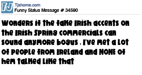 X wonders if the fake Irish accents on the Irish Spring commercials can sound anymore bogus , I've met a lot of people from Ireland and NONE of hem talked like that