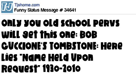 X Only you old school pervs will get this one: BOB GUCCIONE'S TOMBSTONE: Here Lies "Name Held Upon Request" 1930-2010