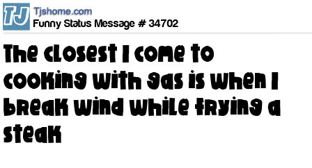 X The closest I come to cooking with gas is when I break wind while frying a steak