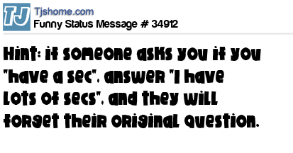 - # 34805 Pro Tip# 101: If someone asks you if you "have a sec" and you answer "I have lots of secs", they will almost always forget their original question...