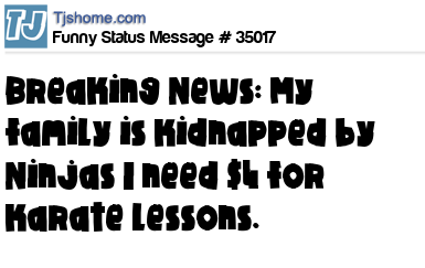 X is Breaking News: My family is kidnapped by Ninjas I need $4 for karate lessons.