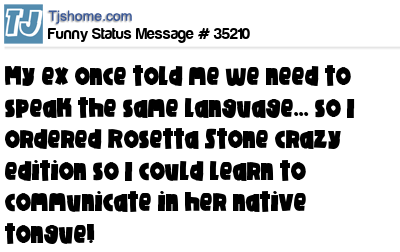 X  My ex once told me we need to speak the same language... so I ordered Rosetta Stone crazy edition so I could learn to communicate in her native tongue!