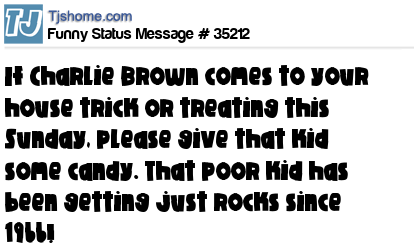 X If Charlie Brown comes to your house trick or treating this Sunday, please give that kid some candy. That poor kid has been getting just rocks since 1966!