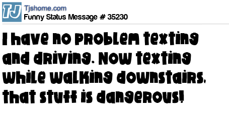 - # 179118 I have no problem texting while driving, but I won't text while going downstairs.. that shits dangerous..