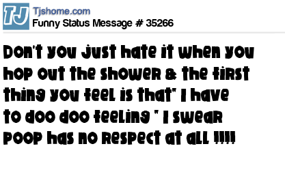 X is Don't you just hate it when you hop out the shower & the first thing you feel is that" I have to doo doo feeling " I swear poop has no respect at all !!!!