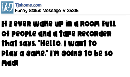 - # 79219 If I ever wake up in a room with a bunch of people and a tape recorder that says, "Hello, I want to play a game", I'm gonna be pissed!
