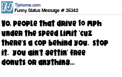 X is yo, people that drive 10 mph under the speed limit 'cuz there's a cop behind you. stop it. you ain't gettin' free donuts or anything...