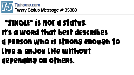 X says *SINGLE* is NOT a status. It's a word that best describes a person who is strong enough to live & enjoy life without depending on others.