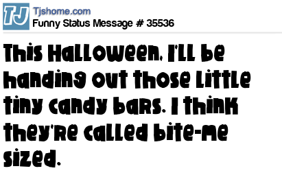 - # 139331 Halloween is just over a week away now. When it comes to candy bars, the term fun-sized is misleading. There is nothing fun about your candy bar being 1/8 the size of a regular bar. You should call them what they are: “disappointment-sized.”