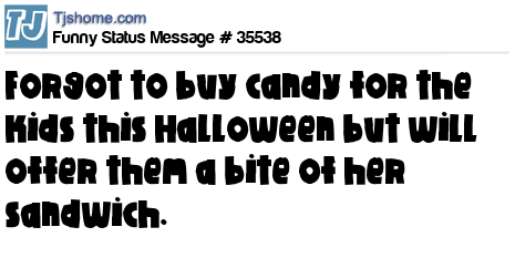 X forgot to buy candy for the kids this Halloween but will offer them a bite of her sandwich.