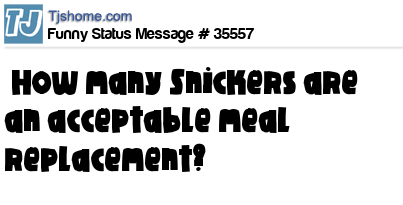 - # 32668 How many Snickers are an acceptable meal replacement?