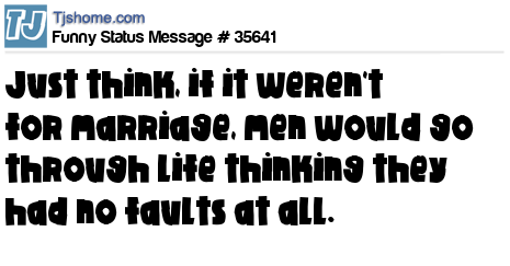 - # 167081 If it weren't for marriage, many of us would go thru life thinking we had no faults at all.