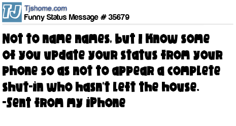 X Not to name names, but I know some of you update your status from your phone so as not to appear a complete shut-in who hasn't left the house. -Sent from my iPhone