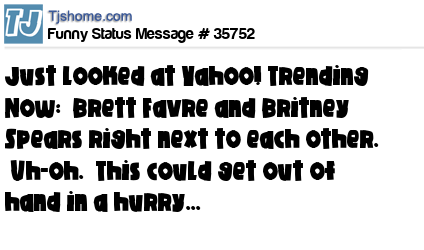 X is just looked at Yahoo! Trending Now: Brett Favre and Britney Spears right next to each other. Uh-oh. This could get out of hand in a hurry...
