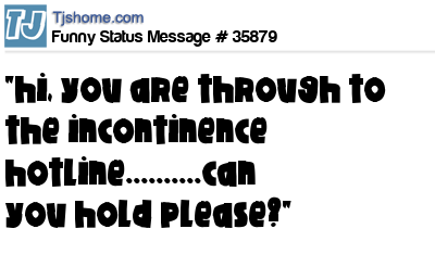 X "hi, you are through to the incontinence hotline..........can you hold please?"