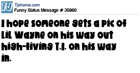 X I hope someone gets a pic of Lil Wayne on his way out high-fiving T.I. on his way in.
