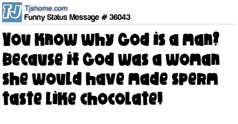 X You know why God is a man? Because if God was a woman she would have made sperm taste like chocolate!