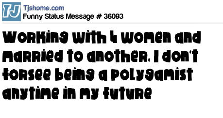 X is Working with 4 women and married to another, I don't forsee being a polygamist anytime in my future
