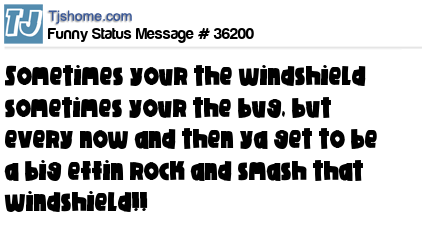 X Sometimes your the windshield sometimes your the bug, but every now and then ya get to be a big effin rock and smash that windshield!!