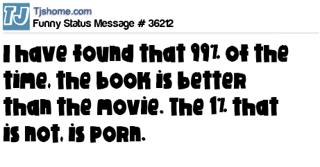 X is I have found that 99% of the time, the book is better than the movie. The 1% that is not, is porn.