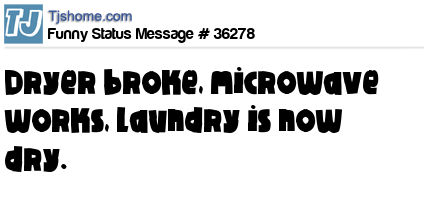 - # 192992 When the dryer buzzer scares you so bad you have to do another load of laundry.