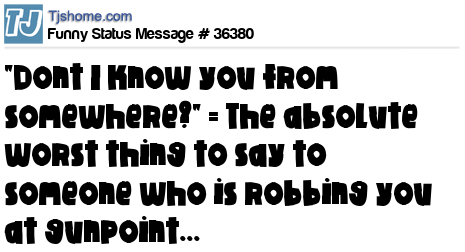 X says "Dont I know you from somewhere?" = The absolute worst thing to say to someone who is robbing you at gunpoint...