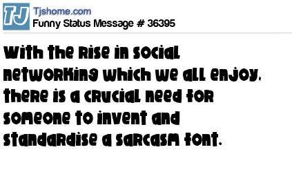 X says With the rise in social networking which we all enjoy, there is a crucial need for someone to invent and standardise a sarcasm font.
