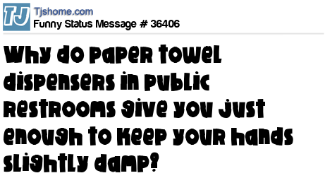 - # 36625 Dear automatic paper towel dispenser mechanic, could you please program this nifty devise to dispense more than just enough paper towel to dry my pinky..... Thanks!