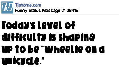X Today's level of difficulty is shaping up to be "Wheelie on a unicycle."