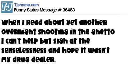 X When I read about yet another overnight shooting in the ghetto I can't help but sigh at the senselessness and hope it wasn't my drug dealer.