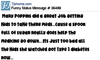 X says Mary Poppins did a great job getting kids to take there meds...Cause a spoon full of sugar really does help the medicine go down... Its just too bad all the kids she watched got Type 2 diabetes now...