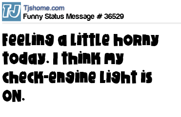 X is Feeling a little horny today. I think my check-engine light is ON.