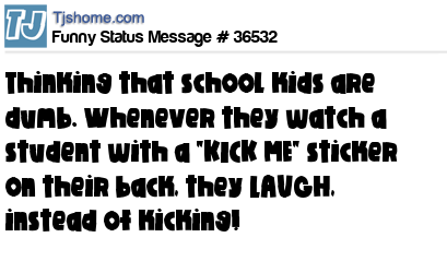 X is thinking that school kids are dumb. Whenever they watch a student with a "KICK ME" sticker on their back, they LAUGH, instead of kicking!