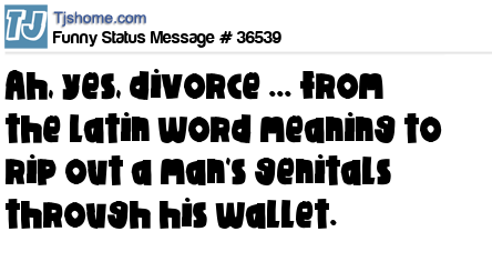 - # 49963 Ah yes, divorce, from the Latin word meaning to rip out a man's genitals through his wallet.