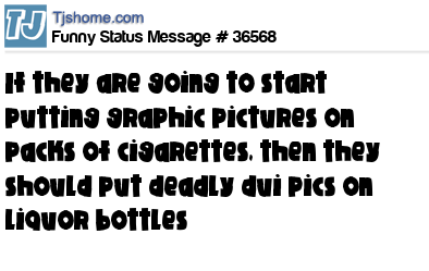 X says if they are going to start putting graphic pictures on packs of cigarettes, then they should put deadly dui pics on liquor bottles