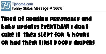 X is tired of reading pregnancy and baby updates EVERYDAY! I don't care if they slept for 4 hours or had their first poopy diaper!