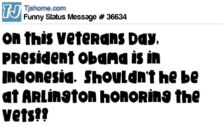 X says on this Veterans Day, president Obama is in Indonesia. Shouldn't he be at Arlington honoring the Vets??