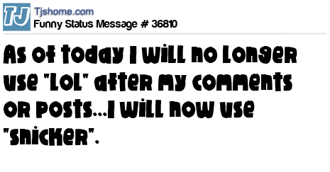 X as of today I will no longer use "lol" after my comments or posts...I will now use "snicker".