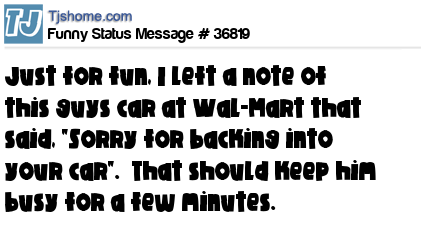 X Just for fun, I left a note of this guys car at Wal-Mart that said, "Sorry for backing into your car". That should keep him busy for a few minutes.