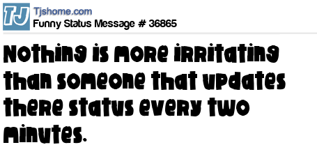 - # 87249 There are good status updates, then there are bad status updates ... then there's 50 feet of crap, then there's mine.
