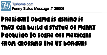 X says President Obama is asking if they can build a statue of Manny Pacquiao to scare off Mexicans from crossing the US border!