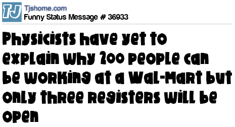 X Physicists have yet to explain why 200 people can be working at a Wal-Mart but only three registers will be open