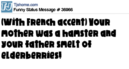 X (With French accent) Your mother was a hamster and your father smelt of elderberries!