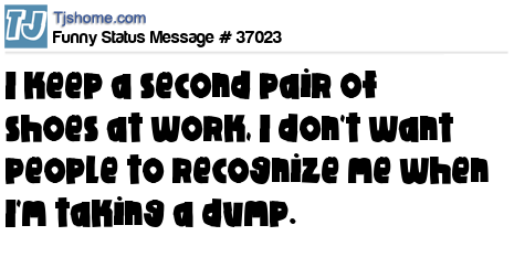 X I keep a second pair of shoes at work, I don't want people to recognize me when I'm taking a dump.