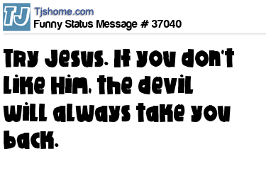 - # 25671 Try Jesus . . . If you don't like him, The Devil will always take you back :)