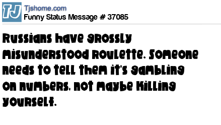 X Russians have grossly misunderstood roulette. Someone needs to tell them it's gambling on numbers, not maybe killing yourself.