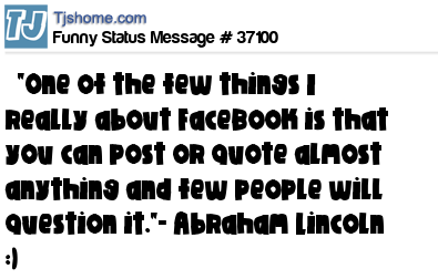 X "One of the few things I really about FaceBook is that you can post or quote almost anything and few people will question it."- Abraham Lincoln :)
