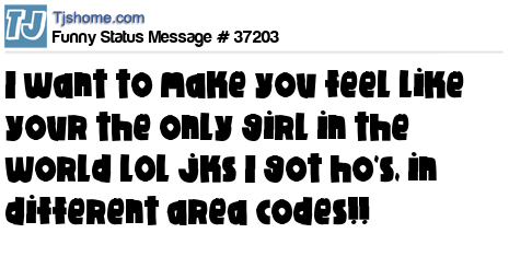 X I want to make you feel like your the only girl in the world LOL jks I got ho's, in different area codes!!
