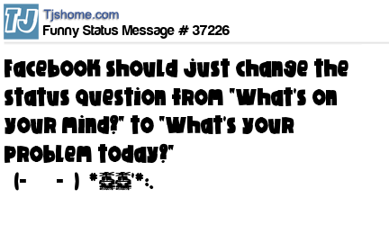 - # 43648 Thinks that Facebook should change the status question from "What's on your mind?" to "What's your problem today?"