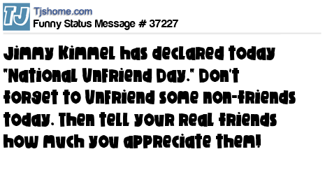 X Jimmy Kimmel has declared today "National UnFriend Day." Don't forget to UnFriend some non-friends today. Then tell your real friends how much you appreciate them!